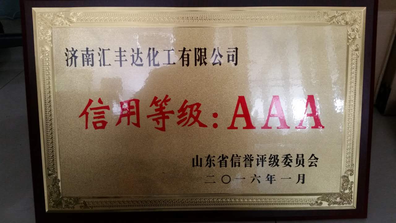 2016年1月7日,是公司成立10周年的喜慶日子。濟南匯豐達化工有限公司被山東省信譽評級委員會評為“信用等級AAA”企業(yè)。
